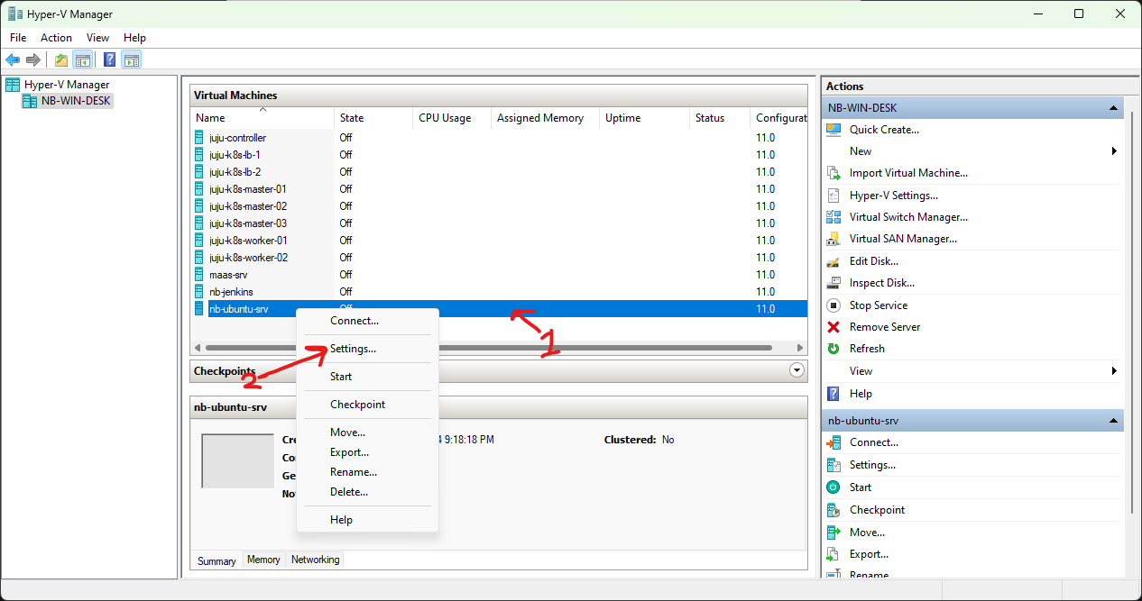 Hyper-v akan membuat disk, dan VM dalam kondisi Off.