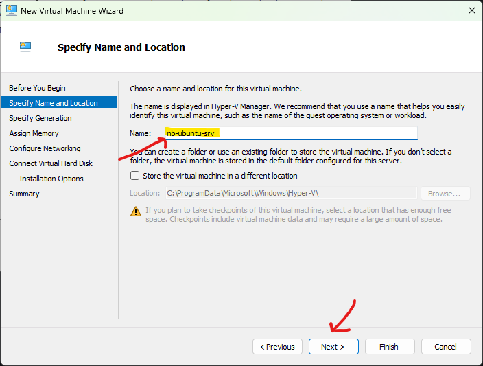 - Selanjutnya masukan nama virtual machine, dan klik next.